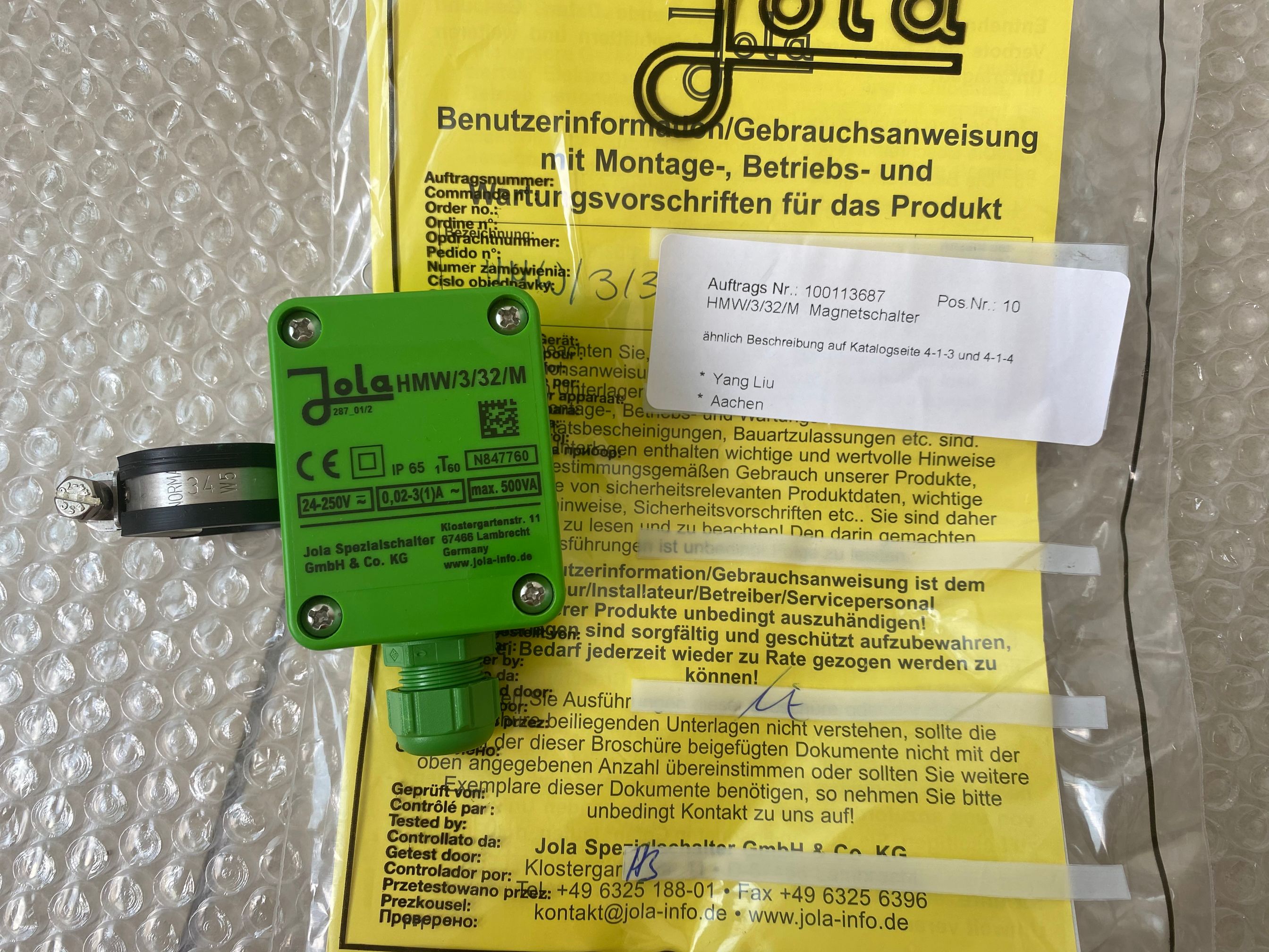 JOLA TSR/3/ED/E1 Kom-NO. 62980/1 IP65 24-250V 0.1-2(0.4A)