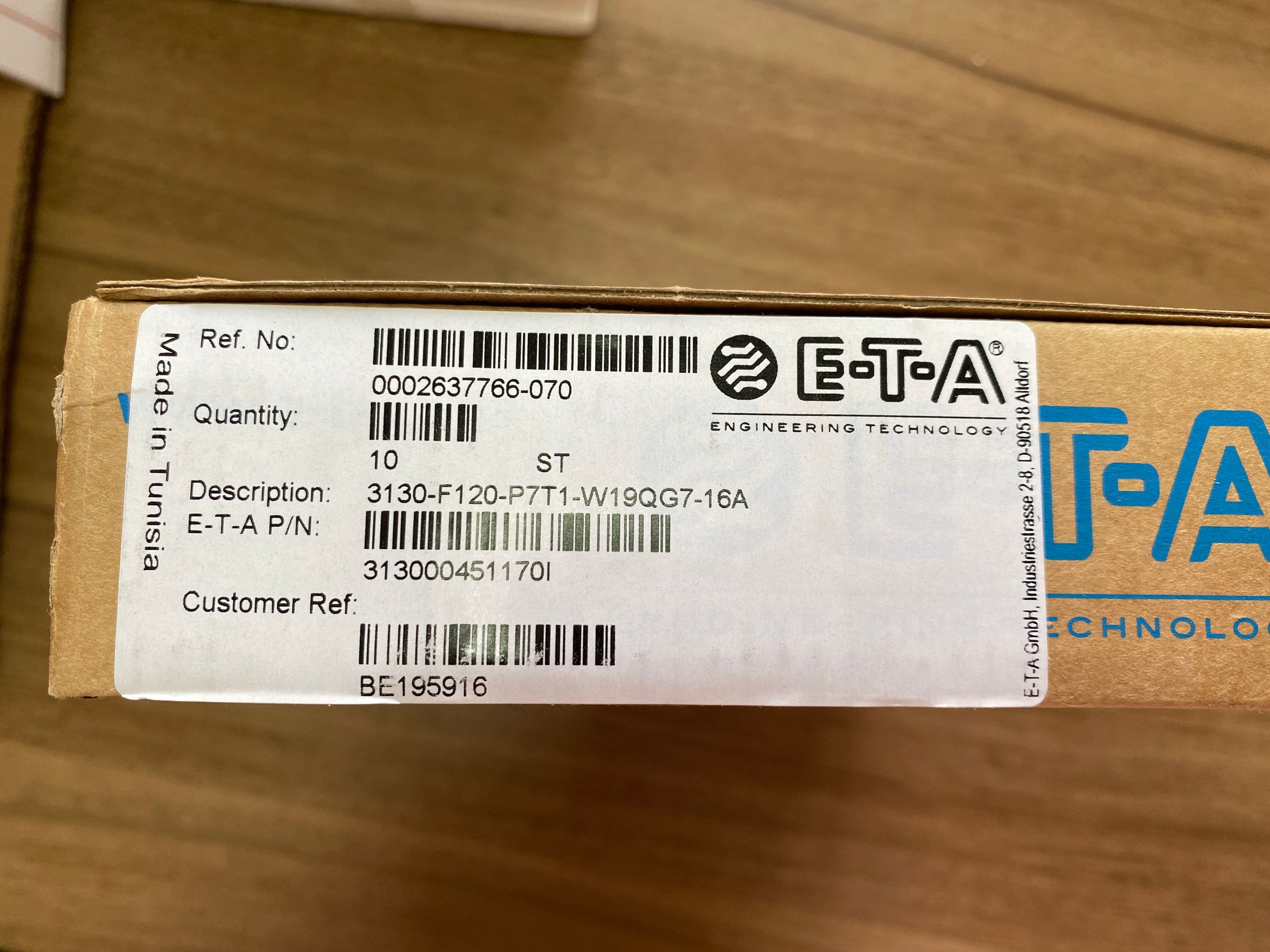 ETA 91H1210,10A 250VAC 1 pole